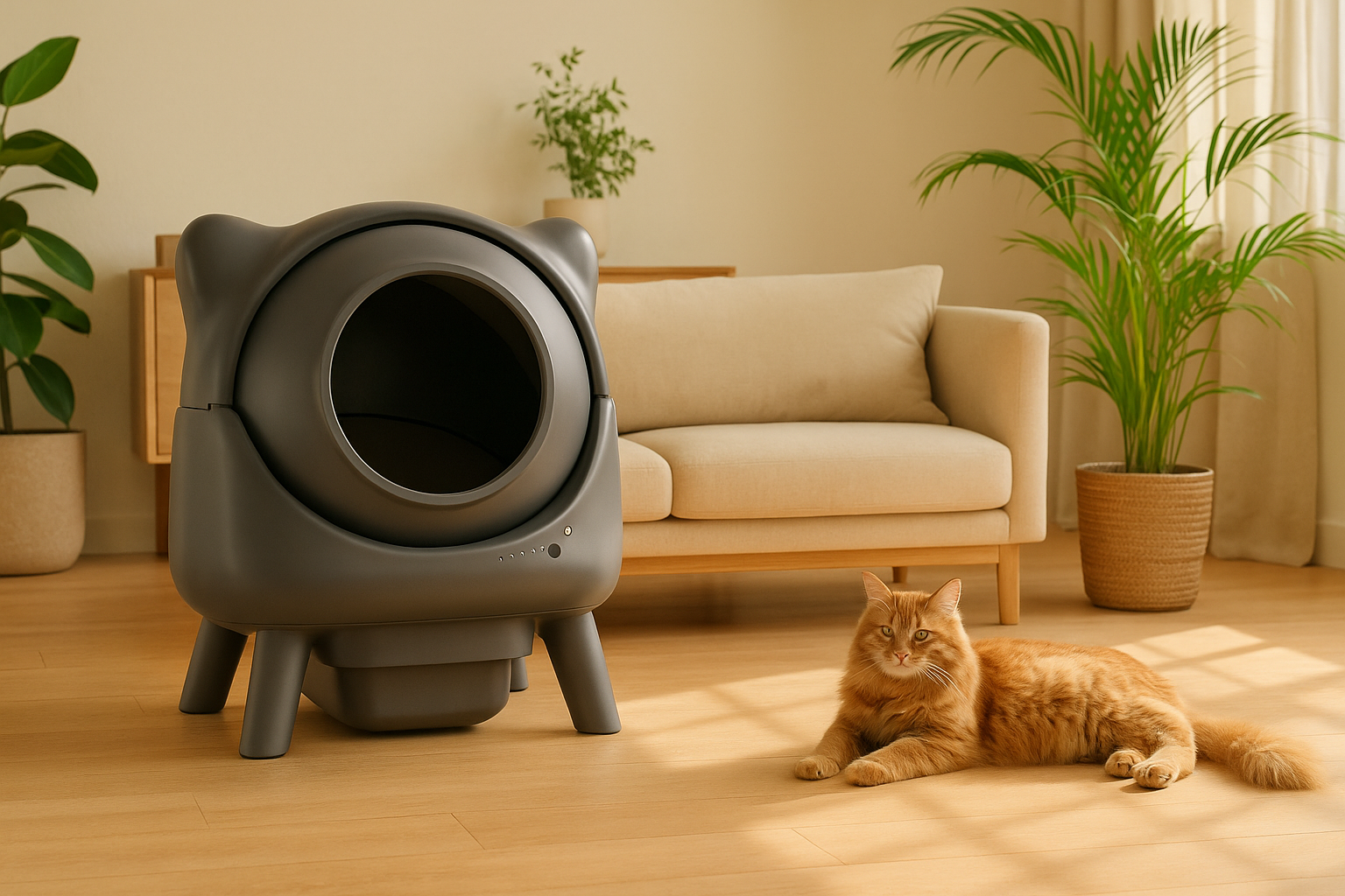 La litière automatique dispose d’un système d’auto-nettoyage et d’alerte de remplissage.