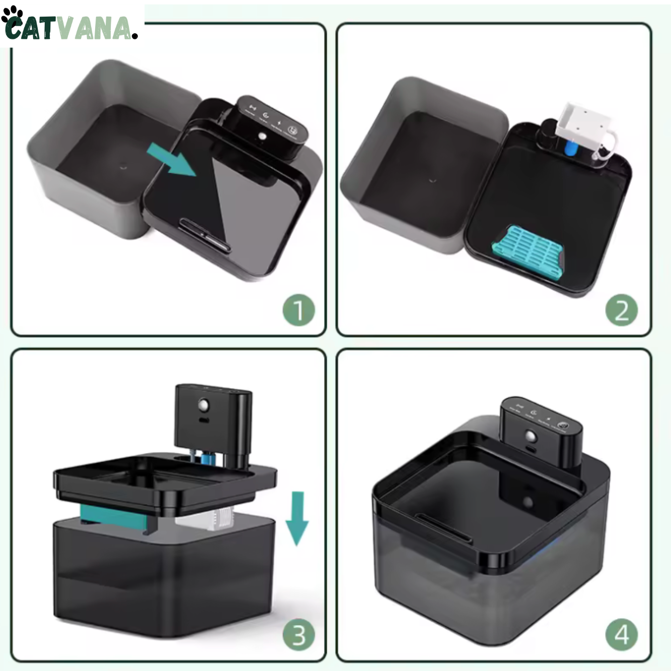 Placer le filtre à charbon dans le compartiment prévu de la fontaine.
