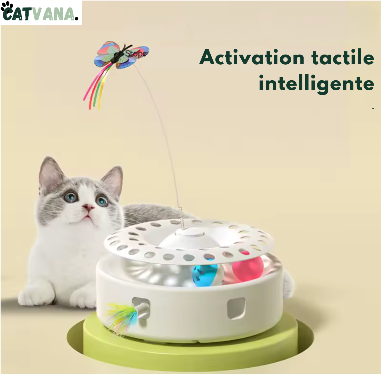 3 vitesses de jeu : permettent d’adapter le rythme à l’âge et à l’énergie du chat.